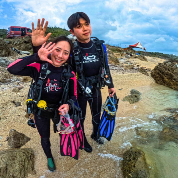 - 請攜帶泳衣及個人換洗衣物,潛水中心提供盥洗浴室及用品