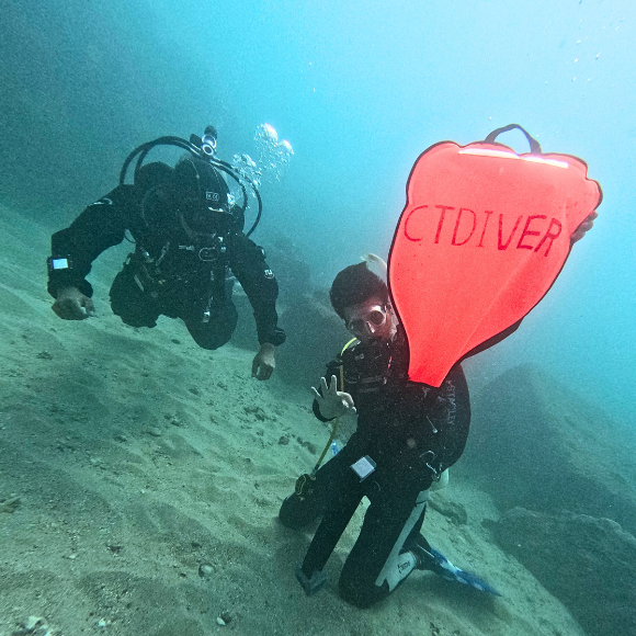 2、水中技巧練習,包含:400公尺游泳、15分鐘踩水、800公尺輕裝游泳、100公尺無意識潛水員拖帶、裝備互換、潛水員救援練習。